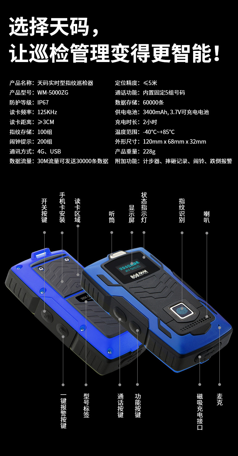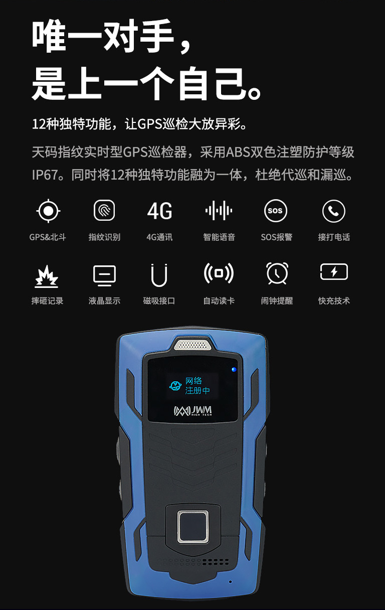 天碼指紋實時型GPS巡檢器,采用ABS雙色注塑防護(hù)等級IP67。同時將12種獨特功能融為一體,杜絕代巡和漏巡。